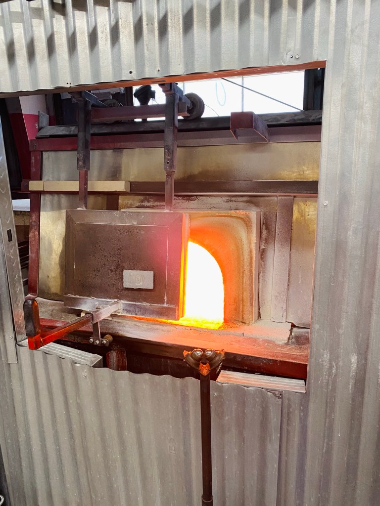 I scheduled my experience with Sonoran Glass School . I wasn’t sure what to expect when I showed up. I didn’t know if I would be lumped into a group of people getting assembly lined through the process. It turned out to be a one-on-one session. The heat from the furnace was INSANE and you really have to get right up close to gather your gooey molten glass blob from the cauldron on a long steel rod. The instructor who was guiding me through the process of making my flowers told me that we were “cooling” my glass blob down to 1000 degrees to be able to start working with it.